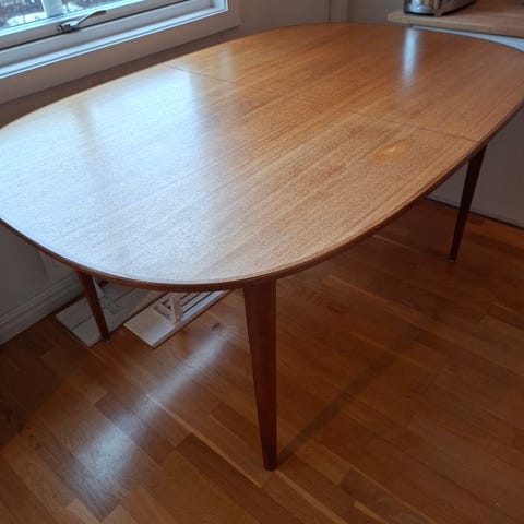 Nypris idag ca 30 000 kr för bord + iläggsskiva.