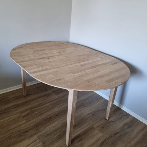 Runt Carl matbord från Stolab, design Marit Stigsdotter. Svensktillverkat i massiv ek (vitoljad).