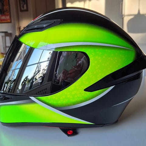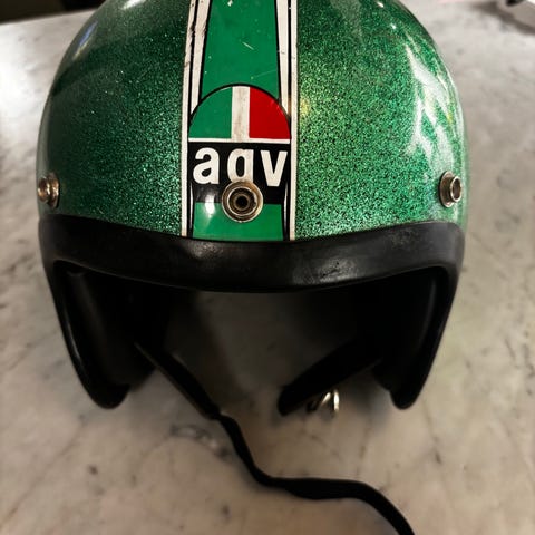 Säljer en mycket sparsamt använd AGV-hjälm i storlek S. Givetvis aldrig tappad, fräsch hjälm både in- och utvändigt. Följer också med ett par häftiga glasögon som fungerar som skydd för ögon under färd. Samma italienska märke som hjälmen AGV. Hjälmen levereras tvättad inklusive nätet på insidan, detsamma gäller glasögonen.