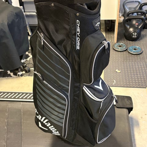 Säljer en mycket välvårdad Callaway Chev Org vagnbag i svart och vitt. Bagen är rymlig, lätt och har 14 fullängdsfack för att hålla ordning på klubborna.