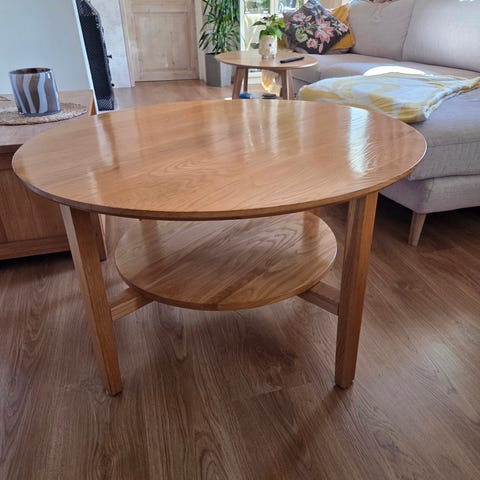 Sparsamt använt Vardagsrumsbord i ek. Mycket fint skick.