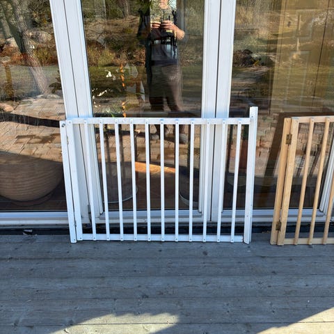 BabyDan trappgrind i vit metall. Bredd upp till 87 cm.