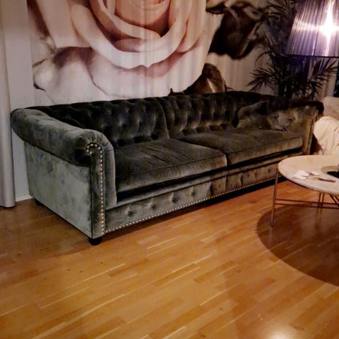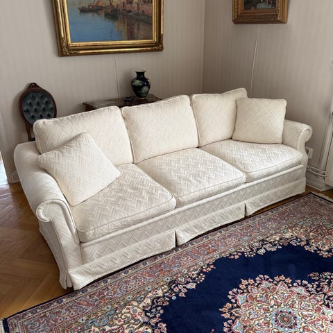 Om man köper motsvarande uppsättning idag i detta utförande och tyg kostar den över 50 000 kr i butik. Mot bakgrund av att jag endast haft möblerna i cirka ett år och att de är i prima skick.
