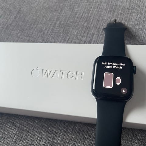 Apple Watch Series 7 GPS + cellular med 41 mm boett i midnightfärgad aluminium.