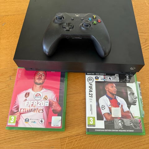 Microsoft Xbox One X spelkonsol med handkontroll och spel