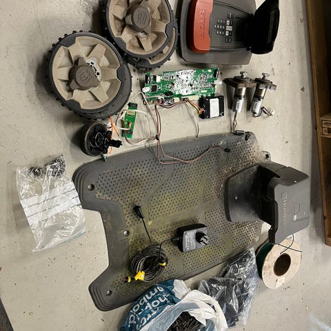 I partiet ingår bland annat odlingsarmaturer, fläktar, kanaler och slangar för ventilation, odlingsrör med hål för plantor, plastbaljor och behållare, pumpar, slangkopplingar och elkablar. Det finns även flera flaskor och dunkar med växtnäring och tillsatser anpassade för hydroponisk odling.