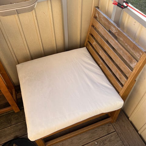 Blå sittkuddar till utemöbler. Obruten förpackning. Bortskänkes.