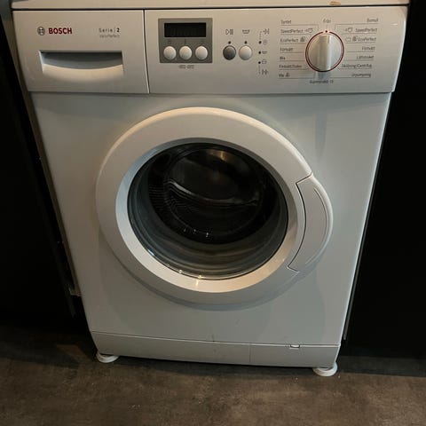 Bosch frontmatad tvättmaskin i vit färg. Maskinen har frontlucka med runt glasfönster och ett överskådligt reglage med display och programväljare på ovansidan. Passar för installation i badrum, tvättstuga eller liknande utrymme där en fristående frontmatad tvättmaskin önskas. Maskinen är avsedd för hushållsbruk och kan anslutas till standard vatten- och avloppsanslutningar.