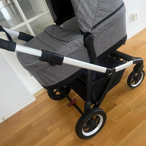 Grå bugaboo fox 2 köpt ny av oss använt till två barn. Djur och rökfritt hem. Ligg och sittdel. Normalt slitage, några synliga repor på chassit. Fortfarande fint skick. Det har krånglat att fälla upp vagnen ibland om den stått kallt (tex på vintern), men har alltid fungerat till slut. Vi har bytt ut lädret på handtaget, så det är även i fint skick.