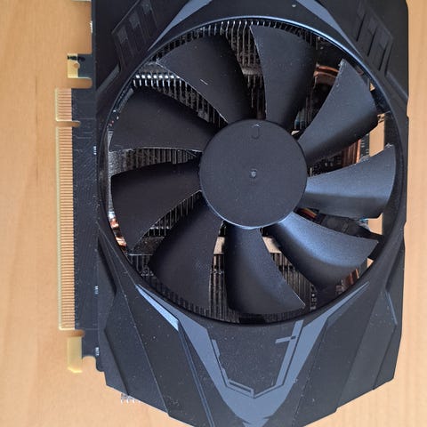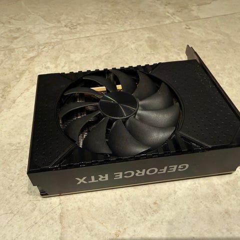 MSI Aero ITX grafikkort i kompakt format med enkel fläktkylare. Kortet har svart kylare och bakplåt samt PCIe‑anslutning. Passar stationära datorer med stöd för PCIe‑grafikkort och är lämpligt för spel, bildbehandling och annan grafikintensiv användning beroende på övriga systemkomponenter och den exakta modellens prestanda.