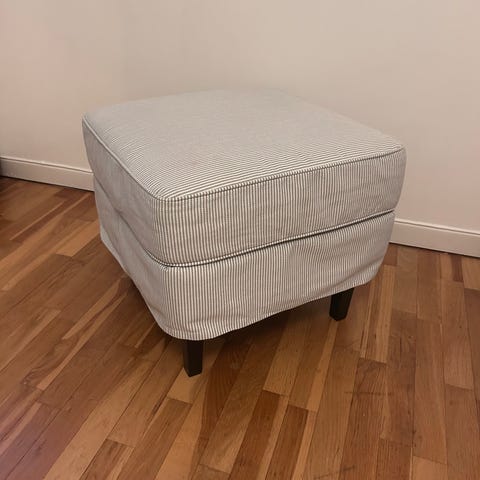 Pall från IKEA med brunt tyg och mörkbruna/svarta träben.
