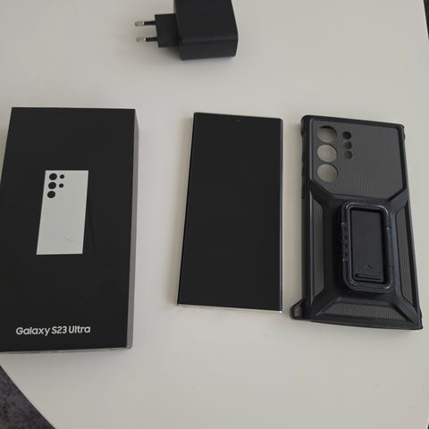 Säljer en Samsung Galaxy S23 Ultra i grönt.