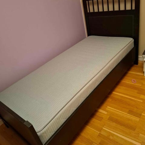 Sängen är i bra skick och fungerar som den ska. Madrass ingår inte, endast sängstomme.