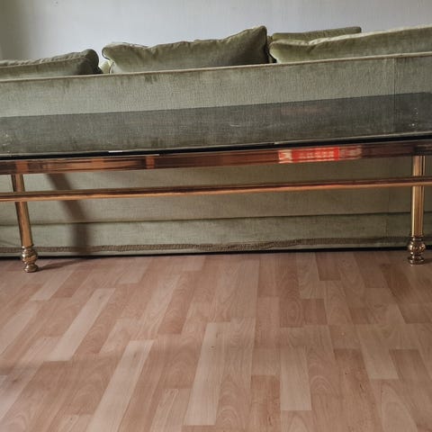 Solitt bord med gedigen tung stenskiva. Ram och ben mässingsfärgade.