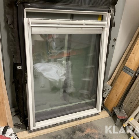 - Ett tvåluftsfönster med träkarm, cirka 980 mm höjd och 1180 mm bredd.