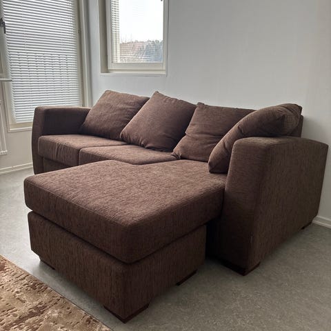 DUX soffa med schäslong brun tyg