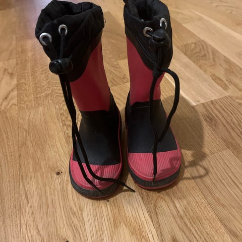 Reima barnstövlar för unisex i storlek 36. Stövlarna är röda med svart och vit sula samt förstärkt tåparti. De har dragsko/snörning framtill för att kunna justeras runt benet och hålla snö ute. Grovmönstrad yttersula ger grepp på hala underlag. Passar som vinter- eller höststövlar för barn.