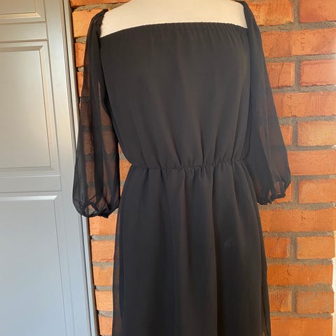 Bälte i midjan med resår, går att ta bort om man vill. Ena öglan på midjan där man ska dra igenom bältet har lossnat, men inget som syns eller påverkar.