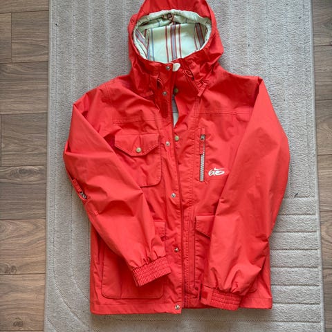 Carhartt jacka i brun färg med fast huva. Jackan har dragkedja framtill och två bröstfickor med lock och tryckknappar. Materialet är ett slätt, lätt glansigt yttertyg med meshfoder på insidan upptill för ökad komfort. Carhartt-logotyp finns på bröstfickan. Passar som ytterjacka i vardagen eller för lättare utomhusbruk.