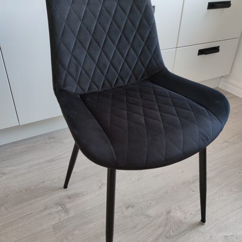 Två stycken matstolar i svart polyestertyg med ben i svart pulverlackerad metall. Varsamt använda och i fint skick! 200kr styck