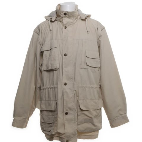 Kappa i kamouflagemönster med huva. Jackan har dragkedja framtill, knappslå och snörning i midjan för justerbar passform. Flera fickor framtill med lock och knappar. Lämplig som ytterplagg under vår och höst.
