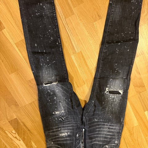Dsquared2 T-shirt storlek XL, tillverkad i Italien. 88% Bomull & 12% Viskos, Tuffa slitningar och färgstänk.