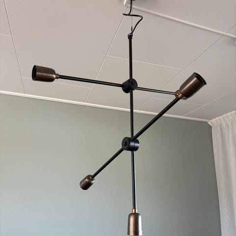 Taklampa från Brilliant, modell G28572. Lampan har fyra ljuskällor med G9-sockel och en maximal effekt på 40W per ljuskälla. Designad för AC-anslutning.