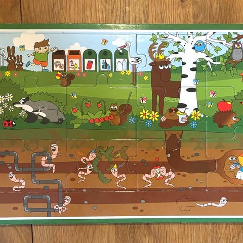 Gro pussel ”En bättre värld” är ett pedagogiskt pussel som introducerar barn till miljömedvetenhet. Pusslet är designat för barn i åldern 4-8 år och består av flera bitar som tillsammans bildar en bild med stad och trafik. Ett lärorikt pussel som uppmuntrar till diskussion om hur man kan bidra till en bättre värld. I mycket fint skick.
