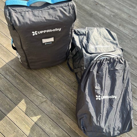 Detta är en väldigt smidig och användbar transportväska när man flyger med barnvagn. Packa väskan, spänn alla spännband, rulla iväg den med de inbyggda hjulen och checka in den som specialbagage, hur smidigt som helst!