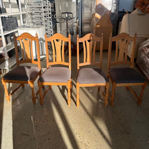 4 stolar 1 bänk och bord med extra skiva. Stort robust och gediget, vi har verkligen uppskattat denna möbler, men den passar tyvärr inte in stilmässigt längre.