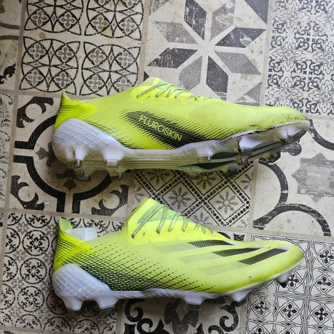 Ett par Adidas X fotbollsskor i grön/gul. Perfekt för fotbollsträningen eller matchen. Stl 38 2/3.