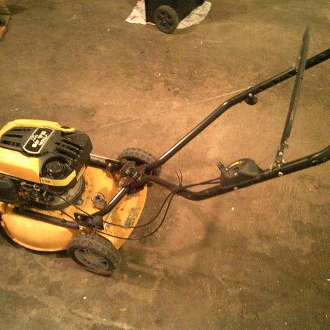 bensin gräsklippare som stått i garage, fin, ej så gammal, ej kört så mkt, finns på väddö