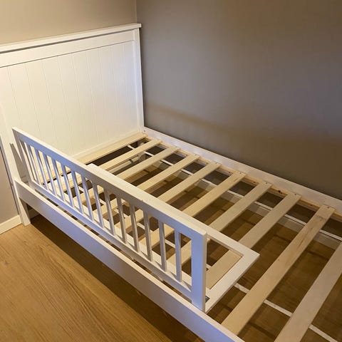 Stabil konstruktion i trä med ribbotten. Passar perfekt som barn-/ungdomssäng, gästsäng eller till mindre rum.