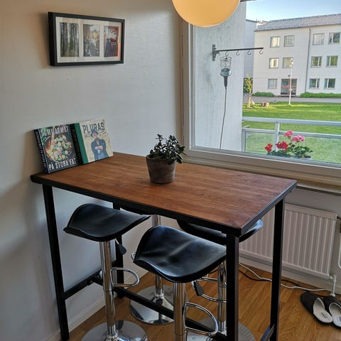 Säljer ihop med pallarna (IKEA), justerbar höjd 64-73cm.