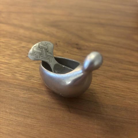Sparbössa formad som barnkänga silverfärgad metall