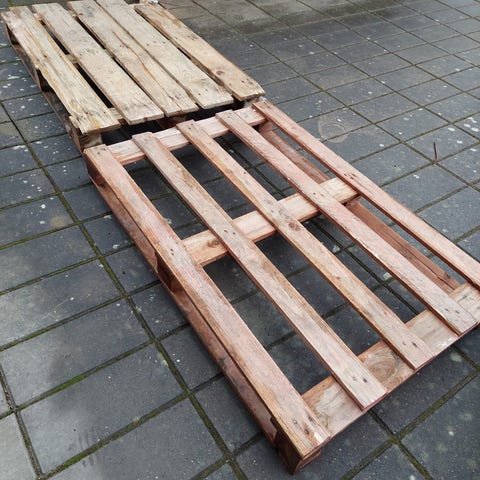 Europall lastpall i trä. Standardiserad palltyp som passar för lagring, transport eller olika bygg- och inredningsprojekt. Pallen är märkt med EUR-stämpel enligt vanlig europallsstandard.