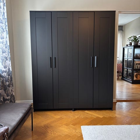 3 st Svartbruna garderobsdörrar Tyssedal, 50x195 cm. Inklusive gångjärn. Ett litet litet märke i nederkant på en dörr. Nypris 1295 kr/dörr. Nu 1500 kr. Hämtas.