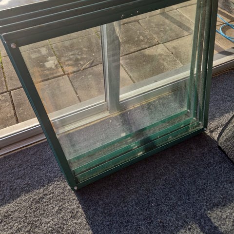 Många clips har flygit iväg och vi har inte orkat köpa nya, därav silvertejp. En av takpanelerna gick sönder och vi satte dit ett nytt som är snäppet för stort. Går ju att skära till i rätt storlek om man orkar, vi orkar inte. Det skulle behövas skrubbas. Och det lilla takfönstret för vädring är fel tillverkat och håller sig alltså inte öppet, säkerligen lätt att lösa om man orkar.