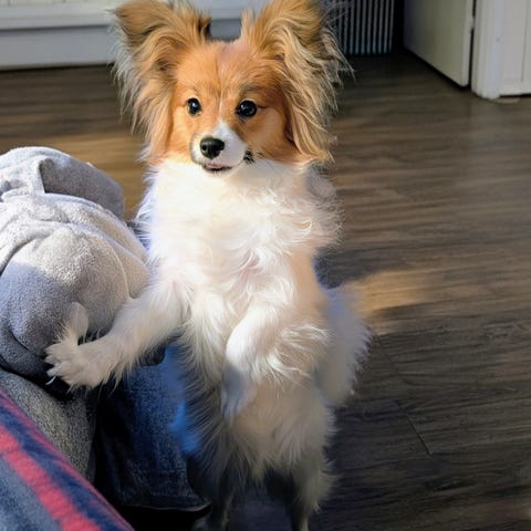 Bruno är en glad vovve som tycker om att gå på promenader, mysa i soffan och leka i trädgården. Han klarar av att vara ensam hemma utan problem. Han skäller på andra hundar men i övrigt är han snäll. Bruno är vaccinerad, chippad, okastrerad.