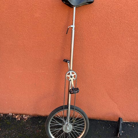 Har stått i inomhusförråd ett antal år, däcket behöver pumpas. En riktig klassiker! Bra första enhjuling för att träna och lära sig.