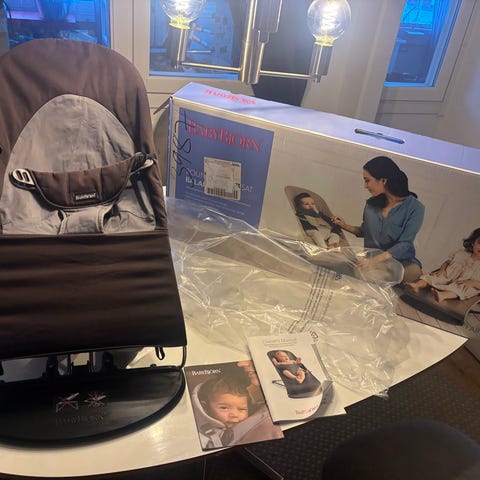 Babybjörn barnstol/babysitter i beige färg. Quiltad textilklädsel med vadderad sits och trepunktssele. Utrustad med leksaksbåge med färgglada träfigurer framtill. Passar små barn som behöver stöd vid vila och lek. Klädseln är avtagbar för rengöring enligt tillverkarens anvisningar.