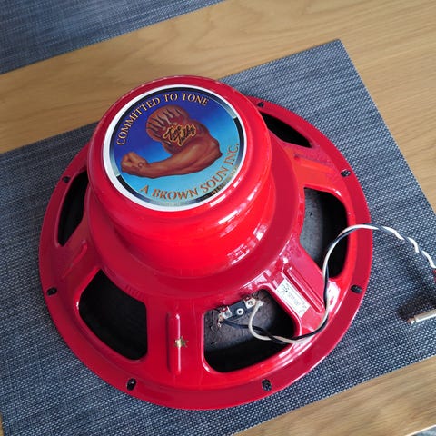 Modellen är avsedd för gitarr- eller förstärkarkabinett och liknande ljudapplikationer. Metallkorg med papperskon. Märkningar och typnummer framgår på baksidan av elementet enligt bilderna.
