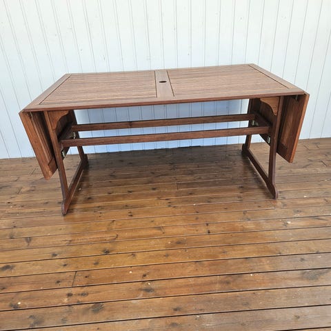 Parasoll svart med trästolpe och parasollfot