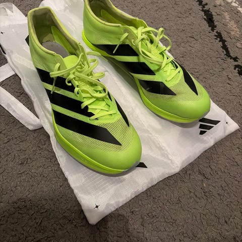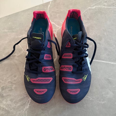 Puma fotbollsskor i storlek 44. Skorna är gula med mörkare detaljer på sidorna och har snörning samt högre skaft för extra stöd runt ankeln. Ovandelen är i textil/syntetmaterial med perforeringar för ventilation. Yttersulan är platt och anpassad för spel på hårdare underlag eller inomhusplaner. Passar för fotboll eller andra bollsporter där lätta och smidiga skor önskas.