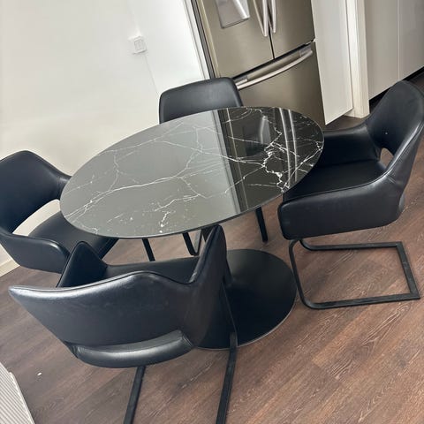 Mio matgrupp trä oval med iläggsskiva och stoppade stolar blommigt tyg