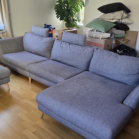 Soffa (mio madison) i gott skick från rent djur och rökfritt hem. Med fotpall. Avtagbar klädsel som nyligen tvättats.går att byta klädsel.