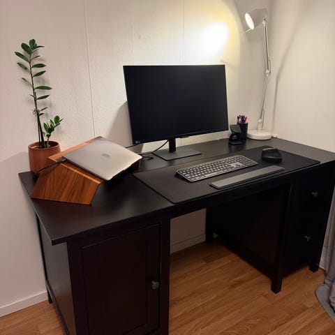 IKEA Malm skrivbord i svart i bra skick säljes. Väldigt praktiskt med sidoförvaring samt bra kabelhantering.