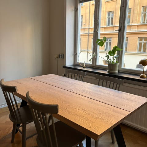 Matbordet är 90x200, finns i Borlänge.