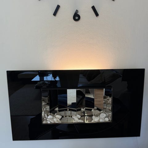 Säljer en mycket snygg och dekorativ kamin som skapar en varm och mysig känsla i hemmet. Perfekt för vardagsrum, sovrum eller uterum där du vill ha en elegant inredningsdetalj med levande lågor.