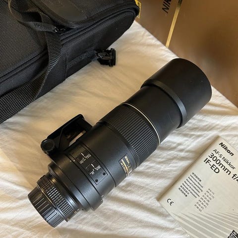Nikon 200-400 f4 vr1 . Bra skick men behöver service autofokus fungerar bara ibland men inga problem så nikon går att laga billigt där av priset på optiken
